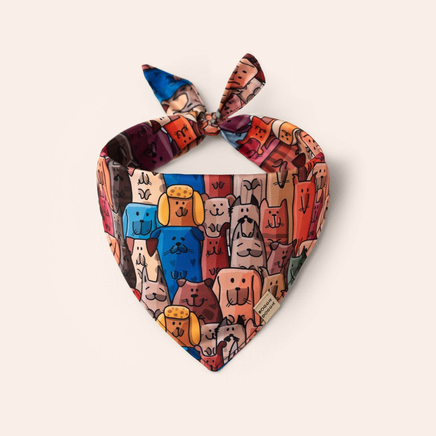 Bandana con estampado de perros y datos. Uno de nuestros diseños más divertidos y coloridos ideal para consentir a tu mascota.