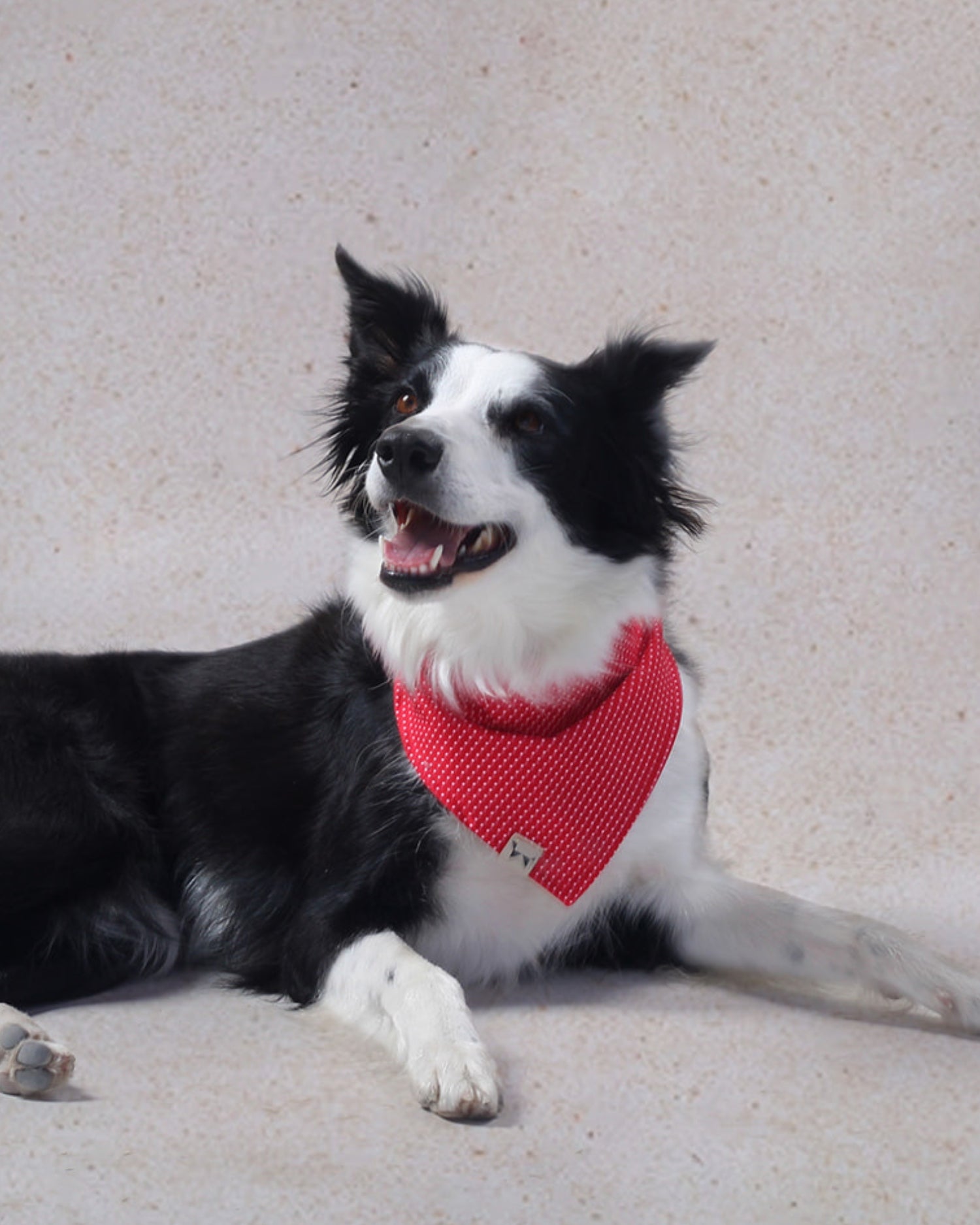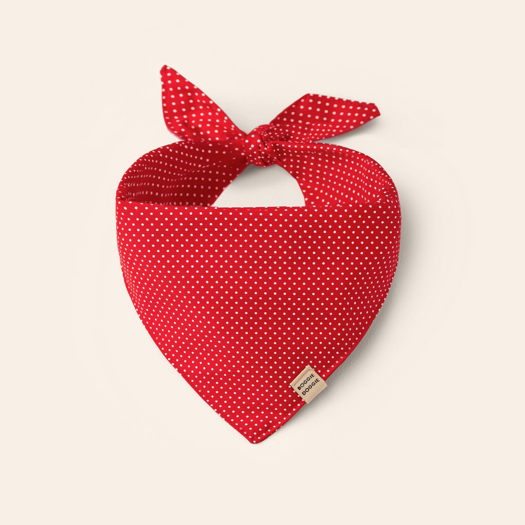 De las favoritas! Bandana roja con pequeños puntos blancos en patrón uniforme. Esta bandana resalta increíble sobre cualquier color de pelaje, da un toque de color ideal y es perfecta para cualquier ocasión.