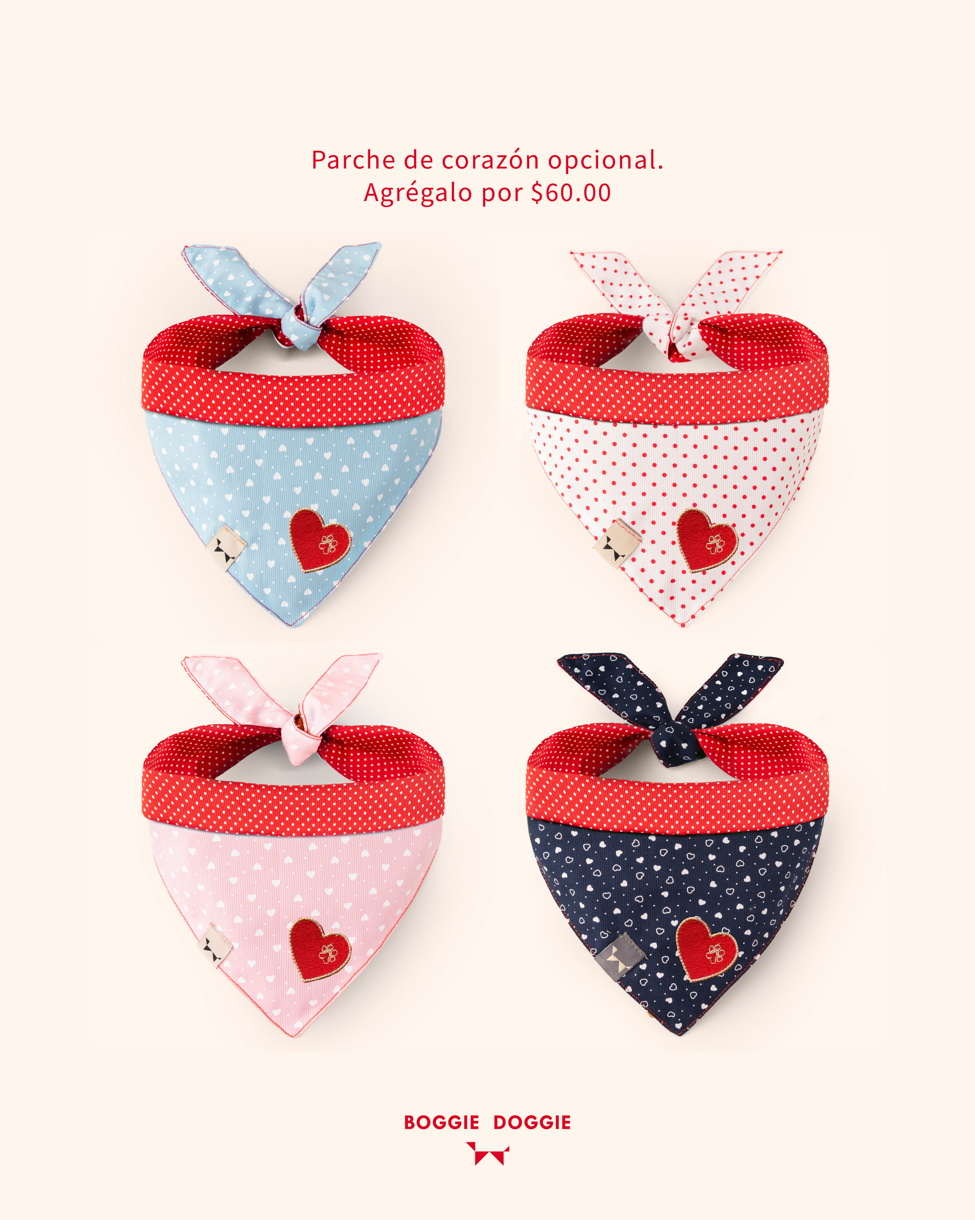 También puedes comprar nuestro parche adhesivo de corazón, el detalle perfecto para San Valentín. Vendemos los parches por separado para que los coloques a tu gusto, o si prefieres recibirlo ya aplicado en la bandana, solo indícalo en la sección “Instrucciones especiales del pedido” dentro de la canasta de compra.